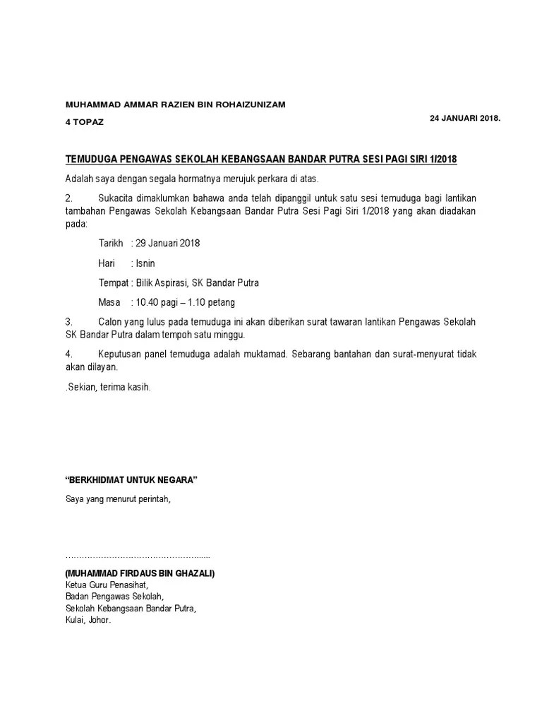 Sample letter ad, employment letter. This document was uploaded by user and they confirmed that they have the . Merujuk pekara di atas, dengan sukacita syarikat kami ingin menawarkan jawatan sebagai pembantu jurutera kepada anda.